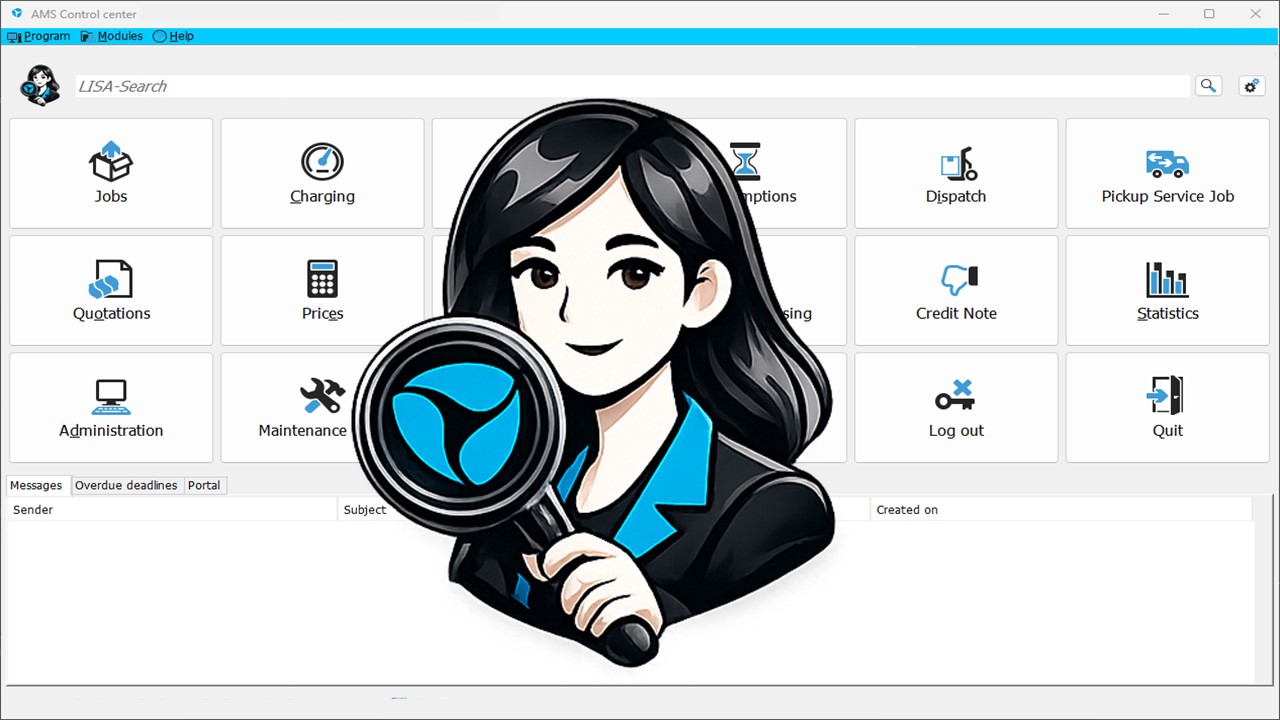 With the update to AMS version 7.3, all customers have access to LISA (Lightweight Intelligent Smart Assistant) for the first time . LISA is integrated directly into the AMS Control Center and helps employees quickly and precisely find relevant job items.