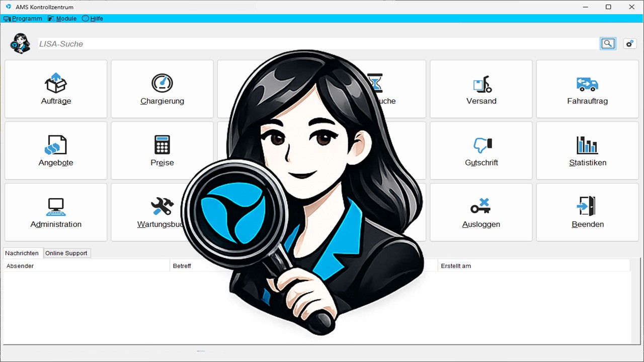 Mit dem Update auf AMS-Version 7.3 steht allen Kunden erstmals LISA (Lightweight Intelligent Smart Assistant) zur Verfügung. LISA ist direkt im AMS-Kontrollzentrum integriert und unterstützt Mitarbeitende dabei, relevante Auftragspositionen schnell und gezielt zu finden.